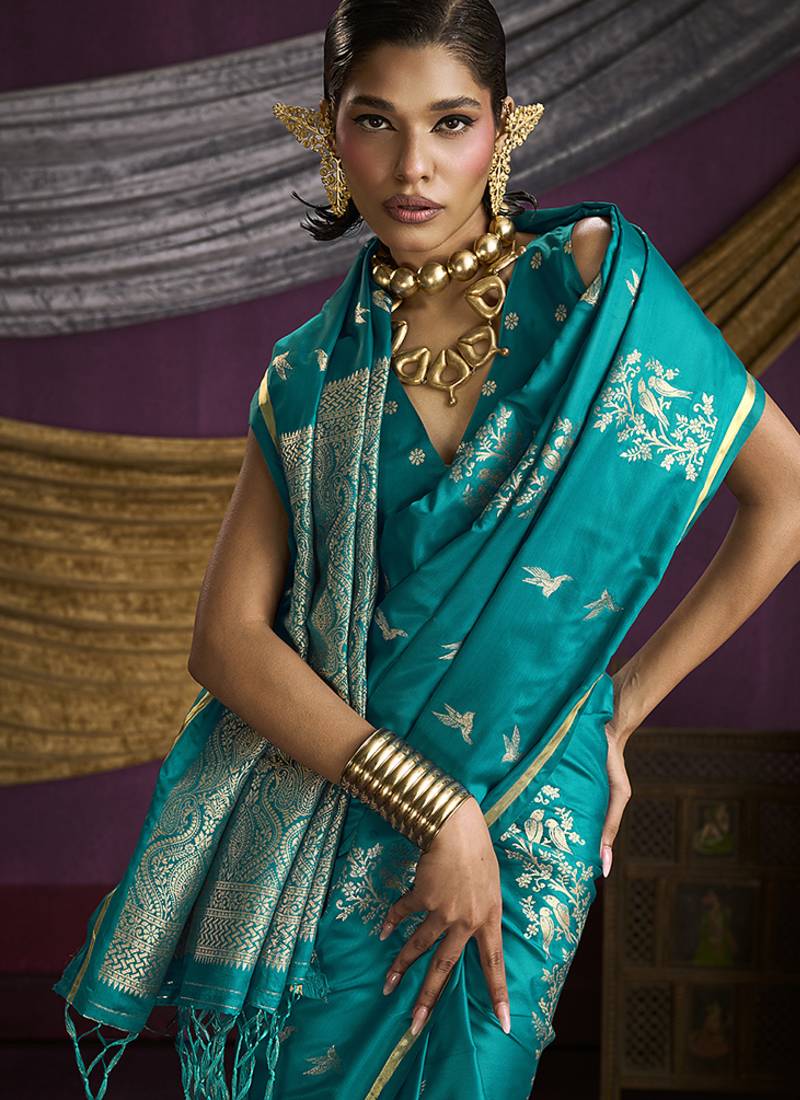 | Product Name | Teal Handloom Silk Blend Weaving Saree | |