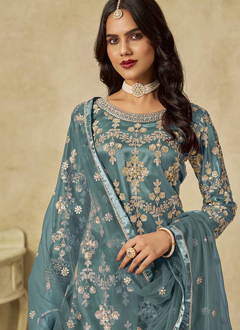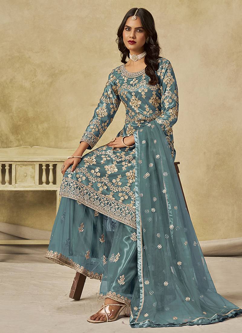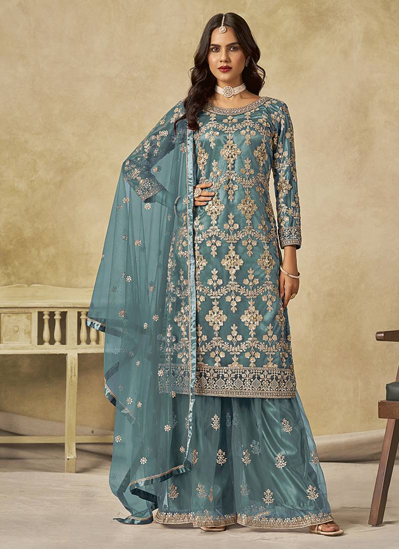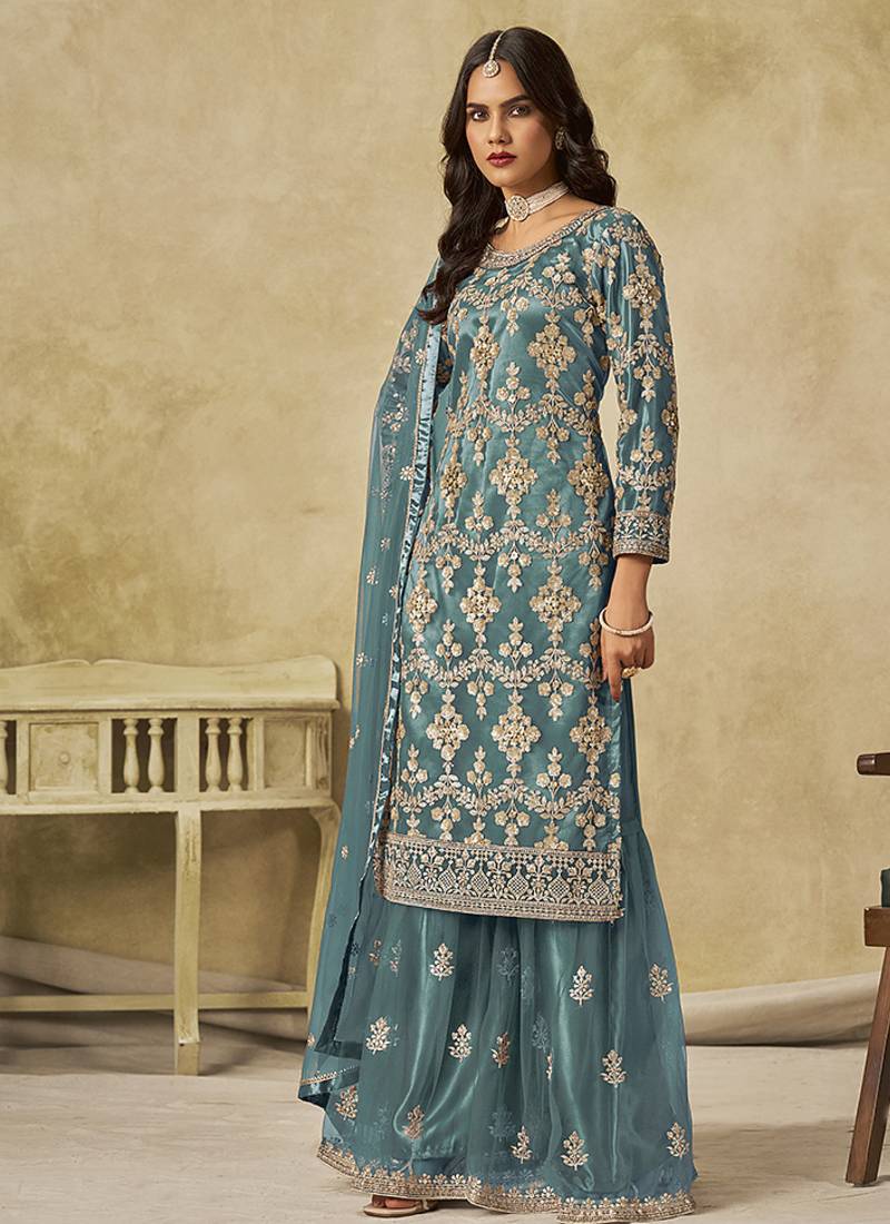 Product Name | Turquoise Embroidered Sequins Work Net Palazzo Salwar Kameez | |