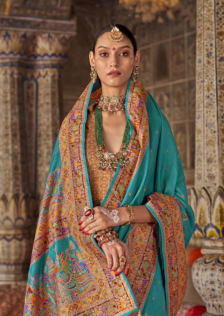 | Product Name | Turquoise Printed Silk Blend Embellished Saree | |