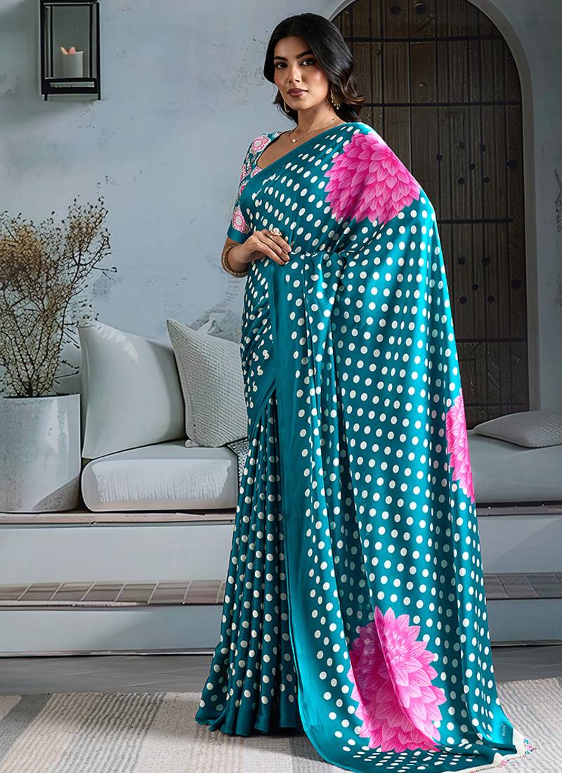 | • | Saree | : | Color- Turquoise / Fabric- Satin |