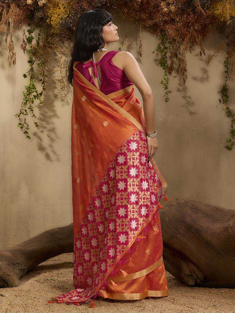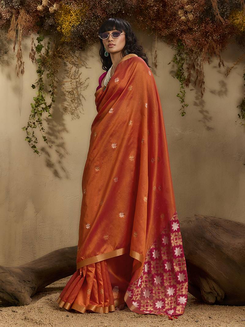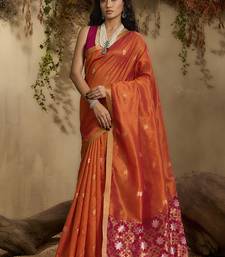 Tussar art silk woven work saree in orange