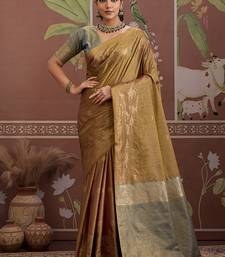 Tussar silk dark beige weaving traditional saree