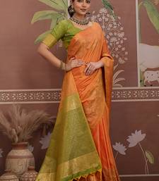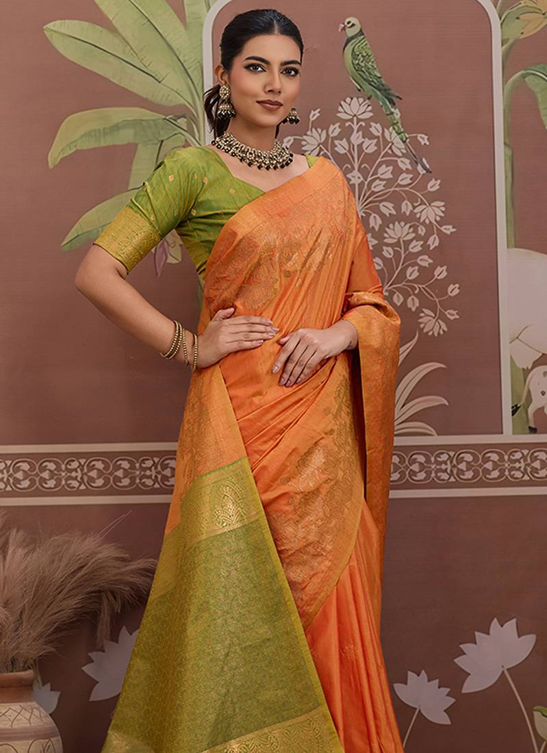 Tussar silk orange weaving traditional saree