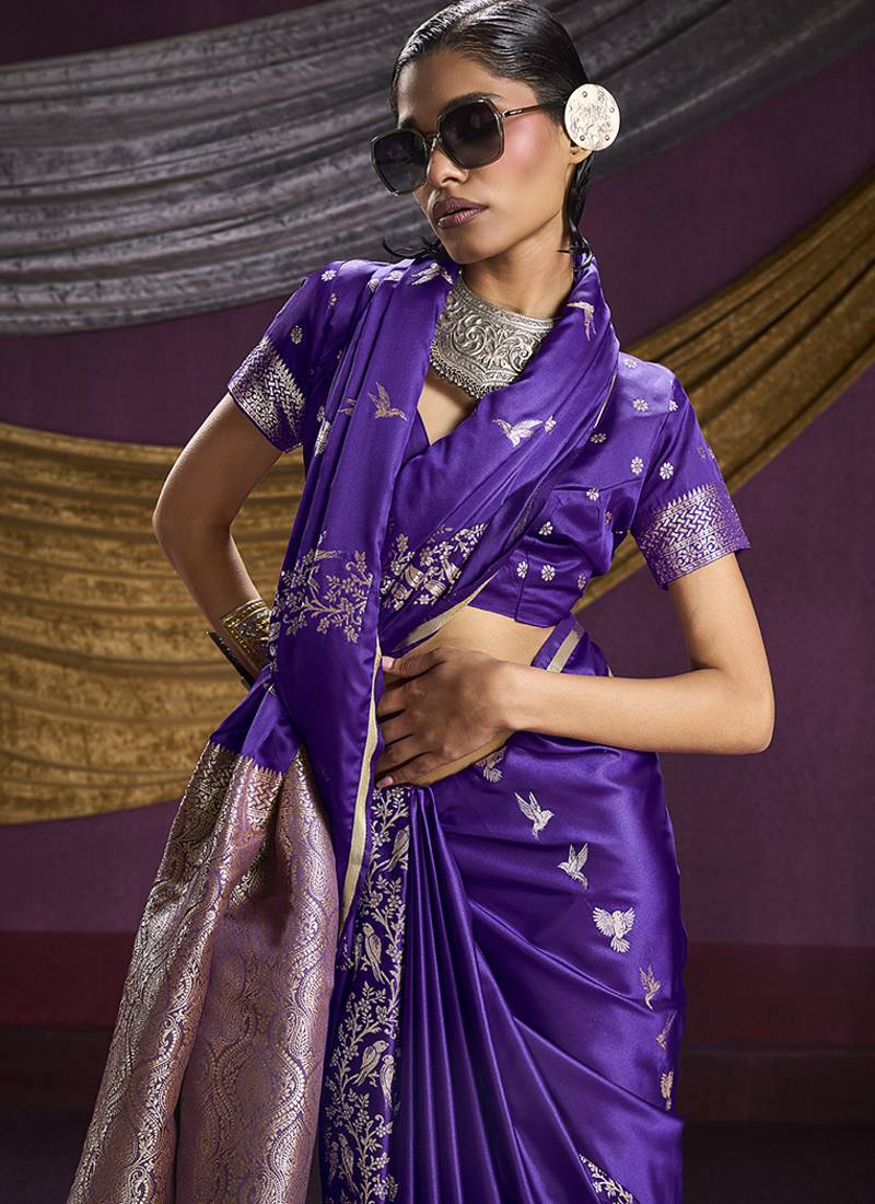 | • | Saree | : | Color- Violet / Fabric- Silk Blend |