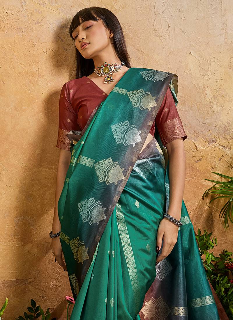 | Product Name | Weaving Handloom Silk Blend Teal Green Contemporary Saree | |