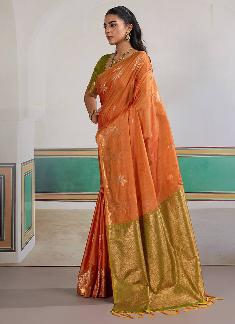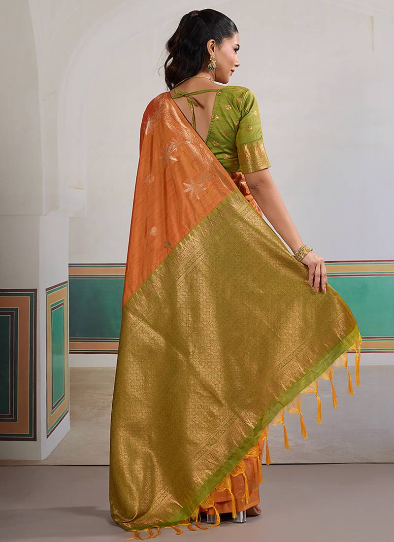 Weaving tussar silk orange saree
