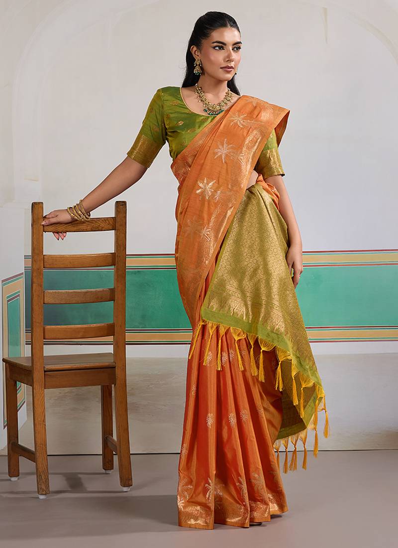 | Product Name | Weaving Tussar Silk Orange Saree | |