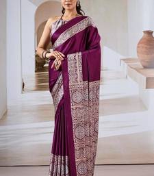 Wine ajrakh print modal satin saree