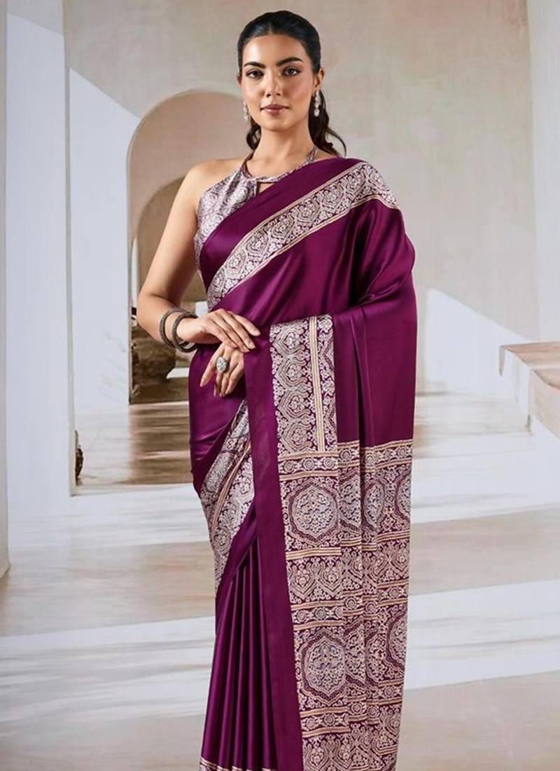 | Product Name | Wine Ajrakh Print Modal Satin Saree | |