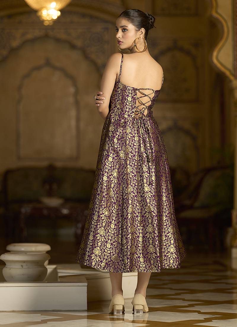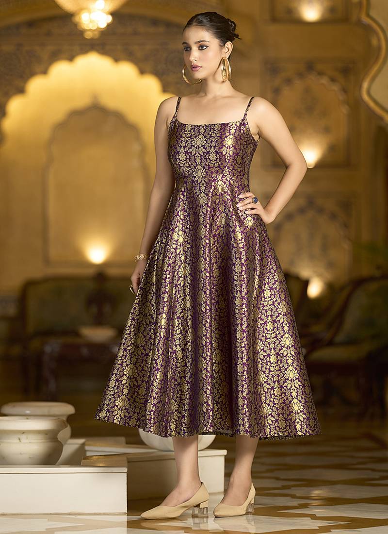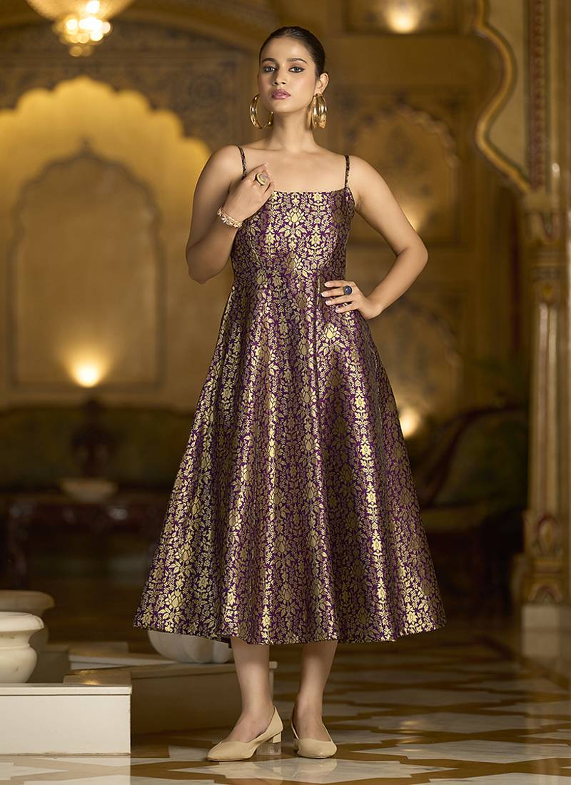 | Product Name | Wine Jacquard Zari Weaving A Line Dress For Women | |