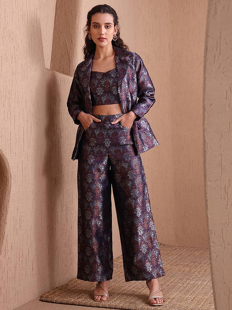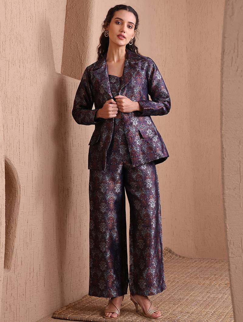 | Product Name | Women's Navy Blue Faux Banarasi Brocade Co Ord Set With Designer Blazer & Wide Leg Pants | |