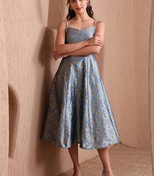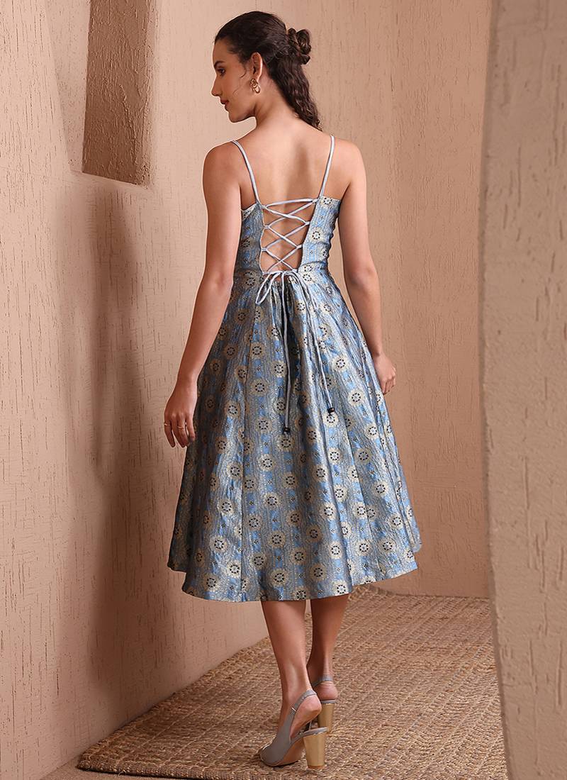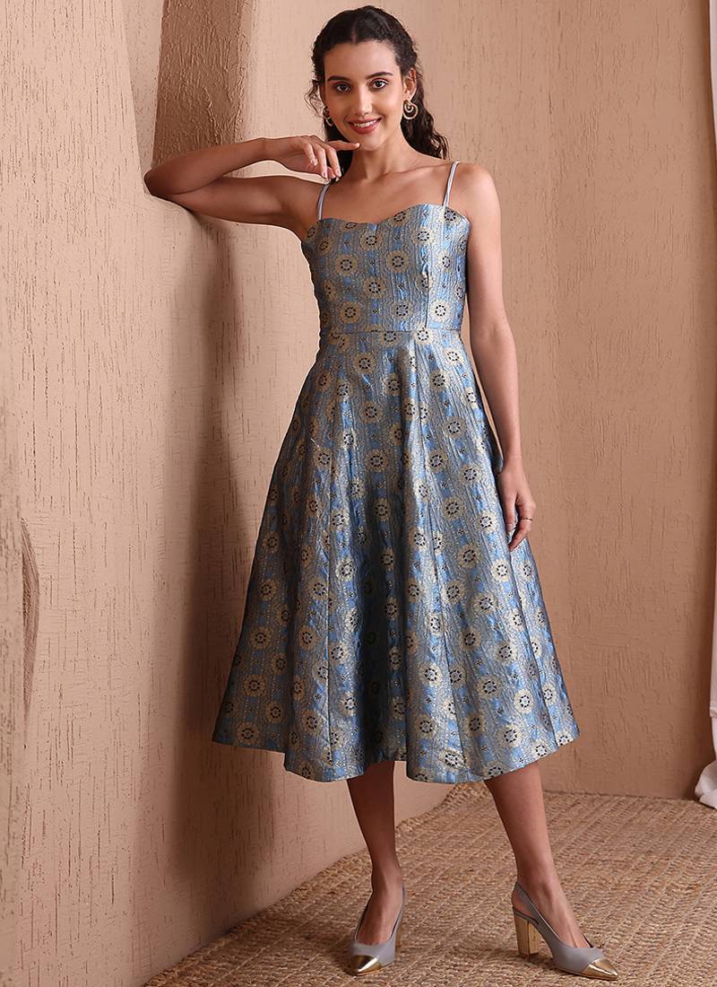 | Product Name | Women's Sky Blue Faux Banarasi Brocade Festive Fit & Flare Midi Dress With Zari Weaving Work | |