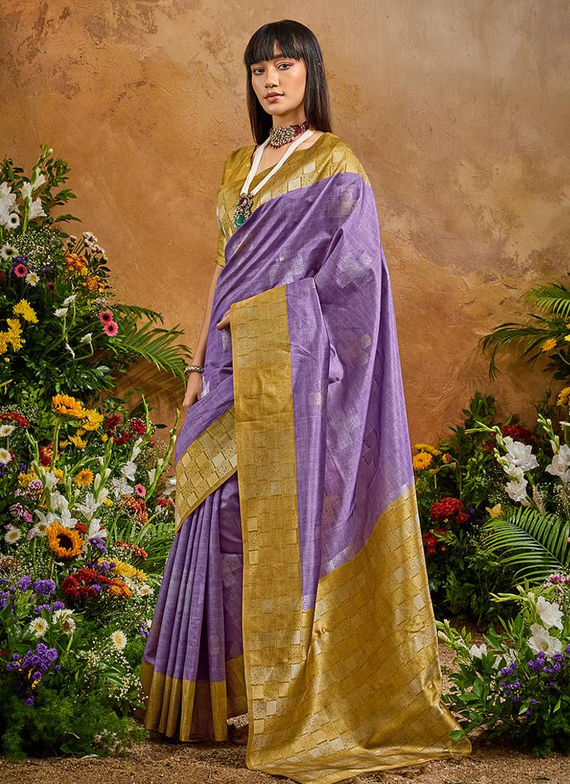 | Product Description | Be The Sunshine Of Anyone’s Eyes Dressed In Such A Charming Lavender Handloom Silk Blend Contemporary Saree. Beautified With Weaving Work All Synchronized Nicely With The Pattern And Style And Design Of The Dress. Comes With Unstiched Blouse. (Slight Variation In Color, Fabric & Work Is Possible. Model Images Are Only Representative.) |