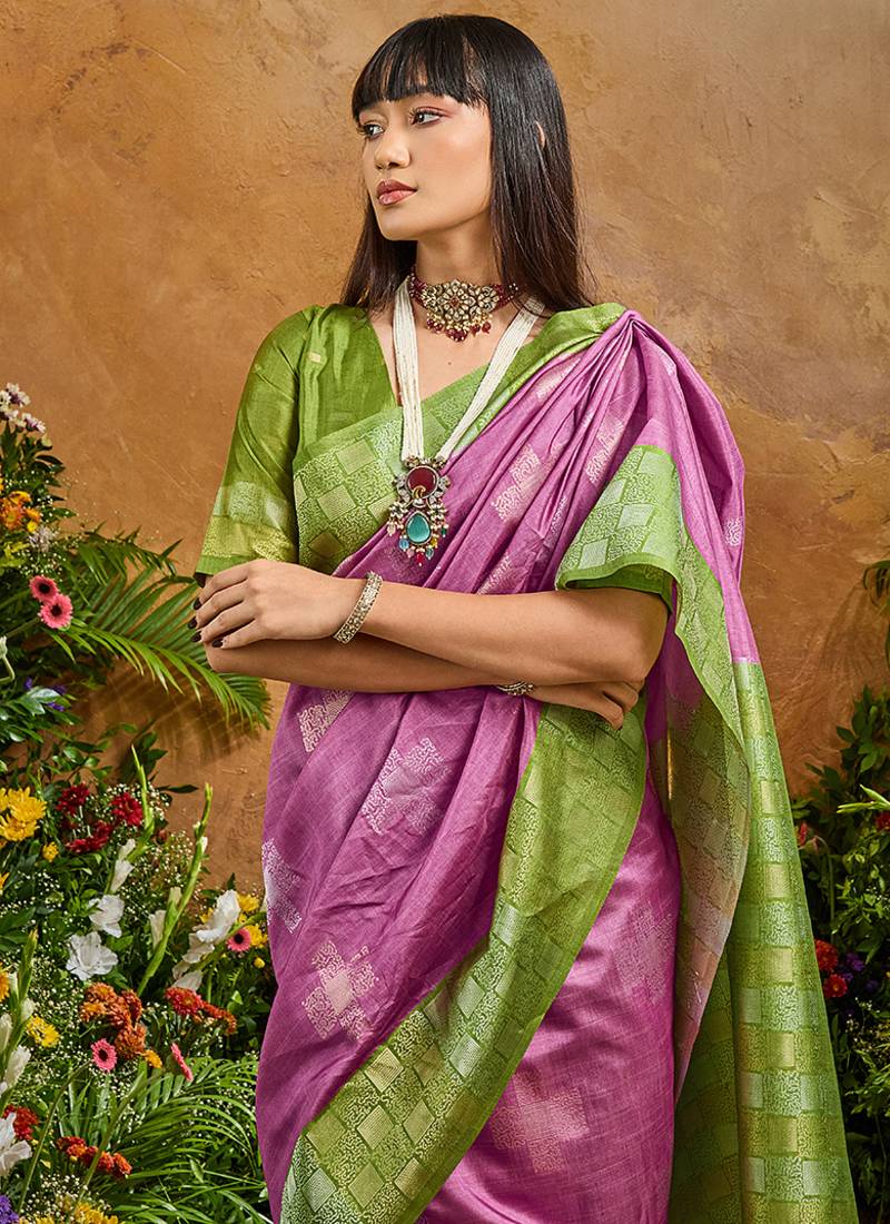 | Product Description | Be The Sunshine Of Anyone’s Eyes Dressed In Such A Charming Lilac Handloom Silk Blend Contemporary Saree. Beautified With Weaving Work All Synchronized Nicely With The Pattern And Style And Design Of The Dress. Comes With Unstiched Blouse. (Slight Variation In Color, Fabric & Work Is Possible. Model Images Are Only Representative.) |