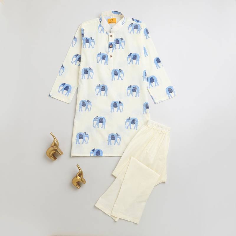 Product Name | Yellow Blue Hand Screen Printed Boys Ethnic Wear Set Of 2 | |