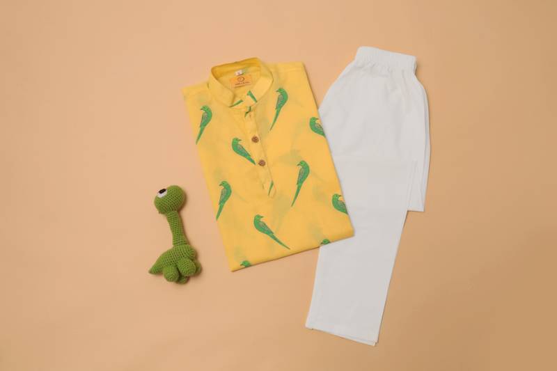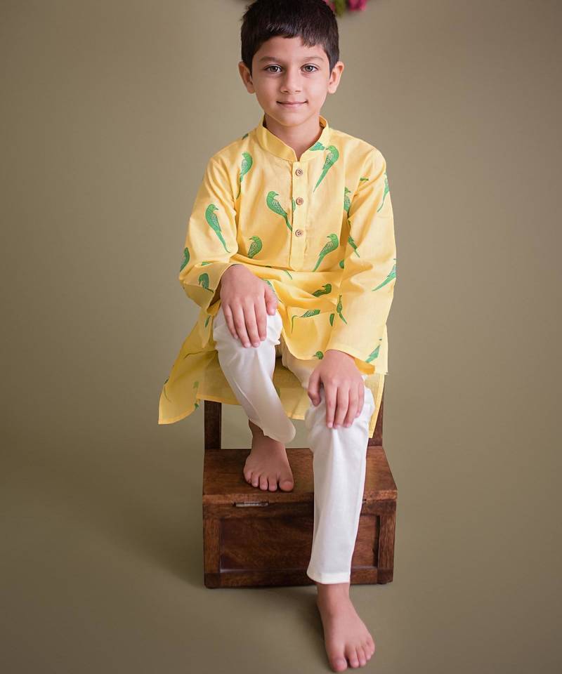 Product Name | Yellow Green Hand Screen Printed Boys Ethnic Wear Set Of 2 | |