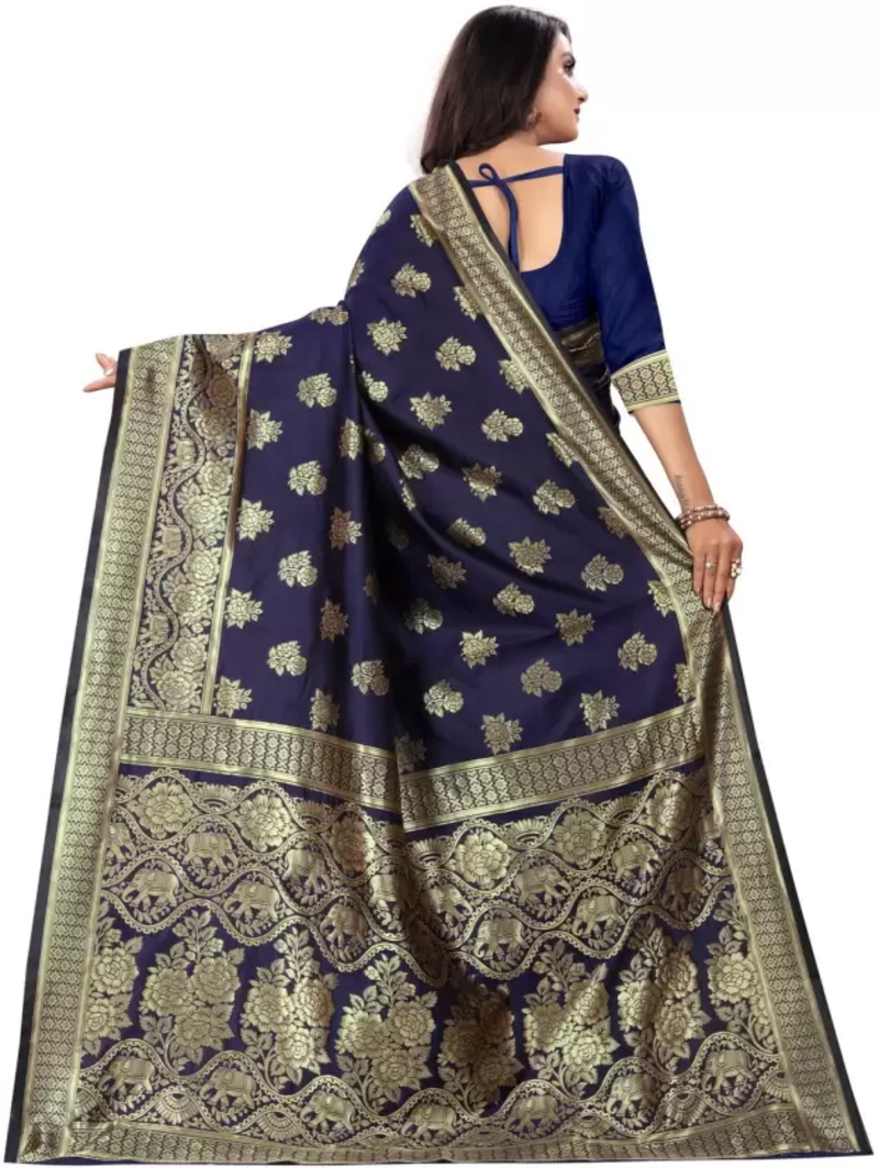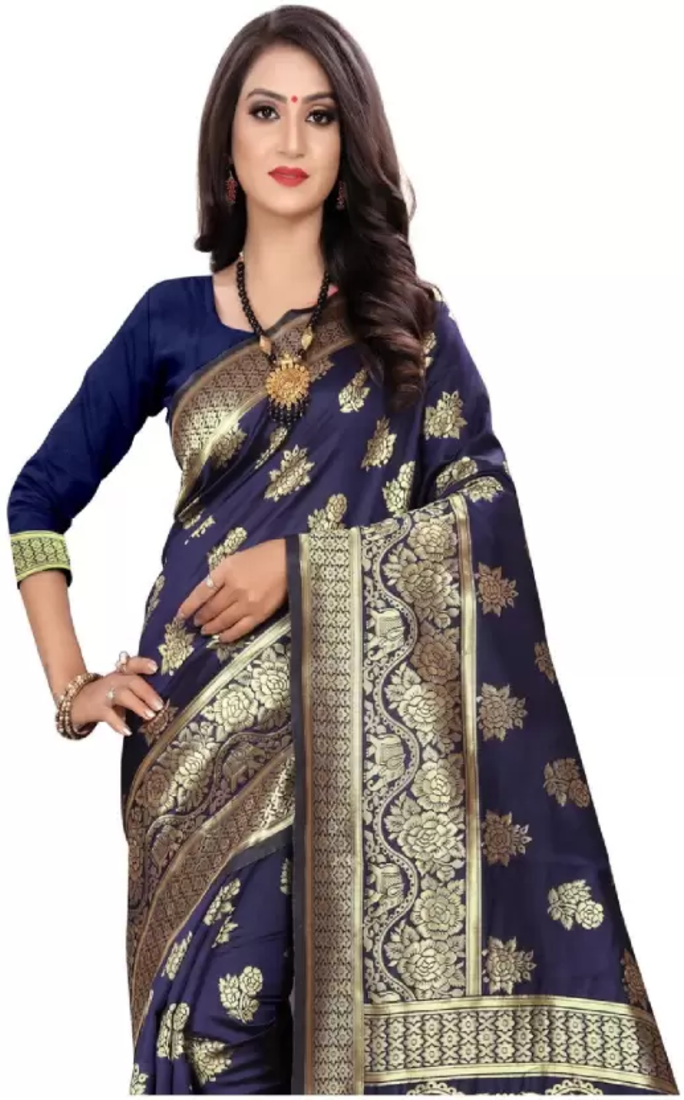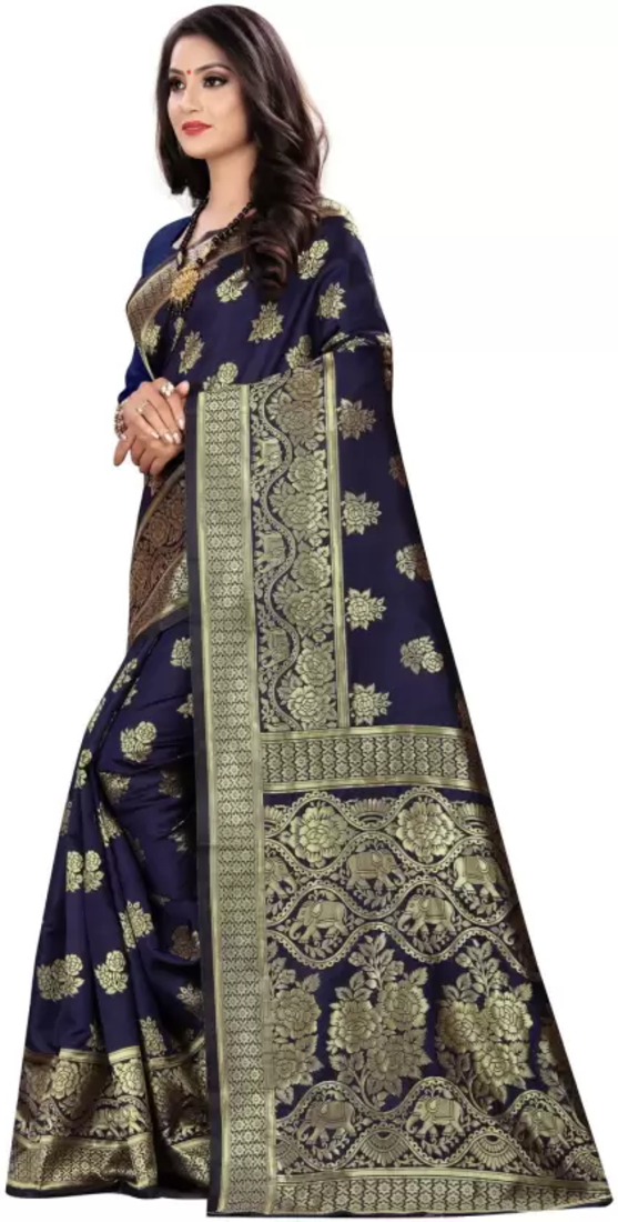 | Product Description | Navy Blue Banarasi Silk Saree With Handloom Weaving Work |