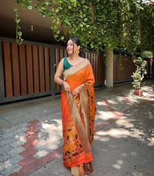 | • | Saree | : | Color- Orange / Fabric- Silk |