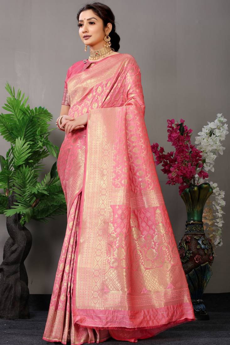 | Product Name | Peach Amazing Pretty Banarasi Silk Saree | |