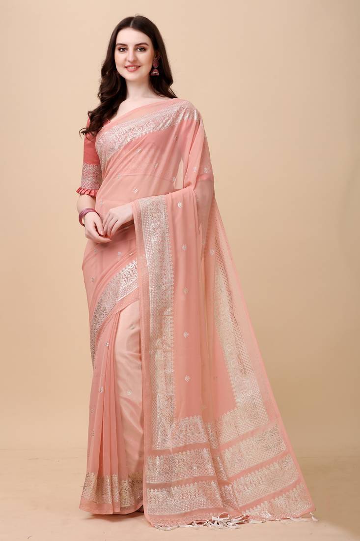 | • | Saree | : | Color- Peach / Fabric- Silk |