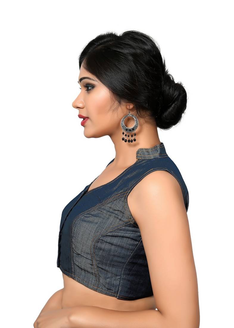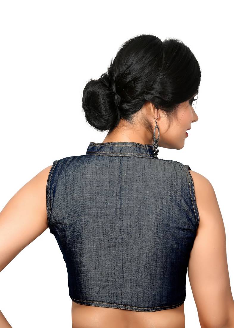 | Product Name | Blue Plain Denim Collar Blouse Readymade Blouse | |