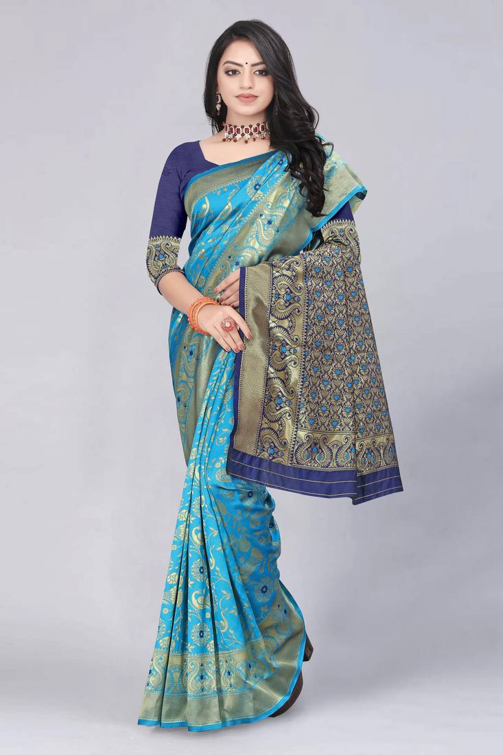 | Product Name | Mukhita Women's Firozi Woven Faux Kanjivaram Silk Blend Saree With Blouse Piece | |