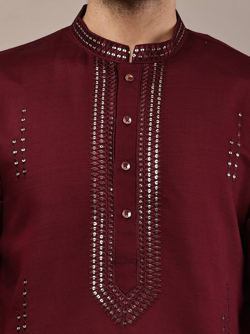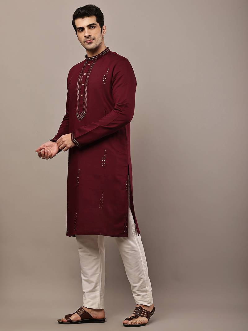 | Product Name | Men’s Ivory Maroon Textured Threadwork Kurta | |