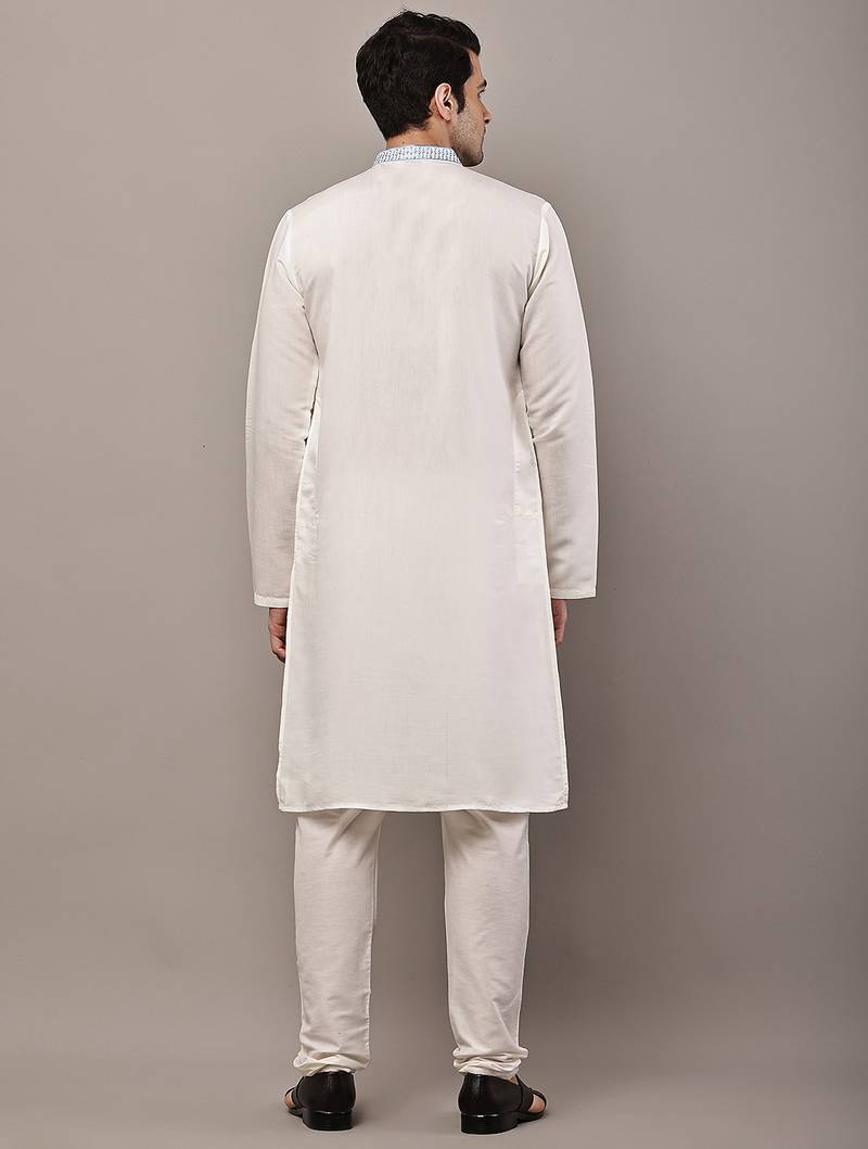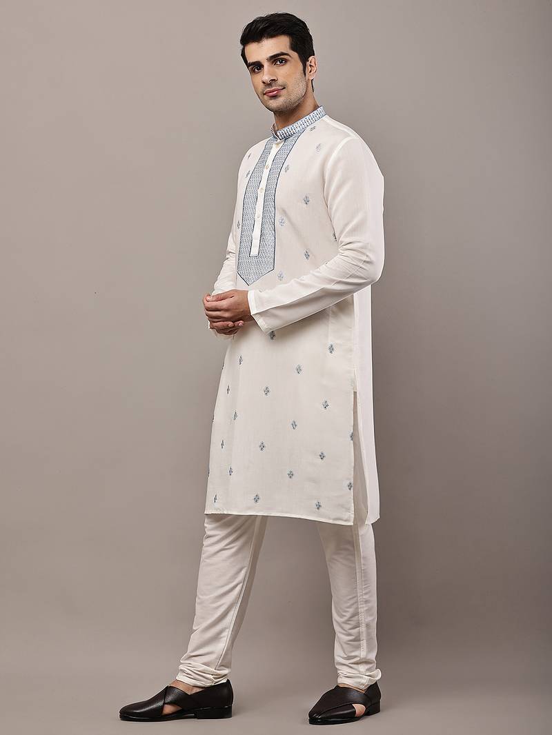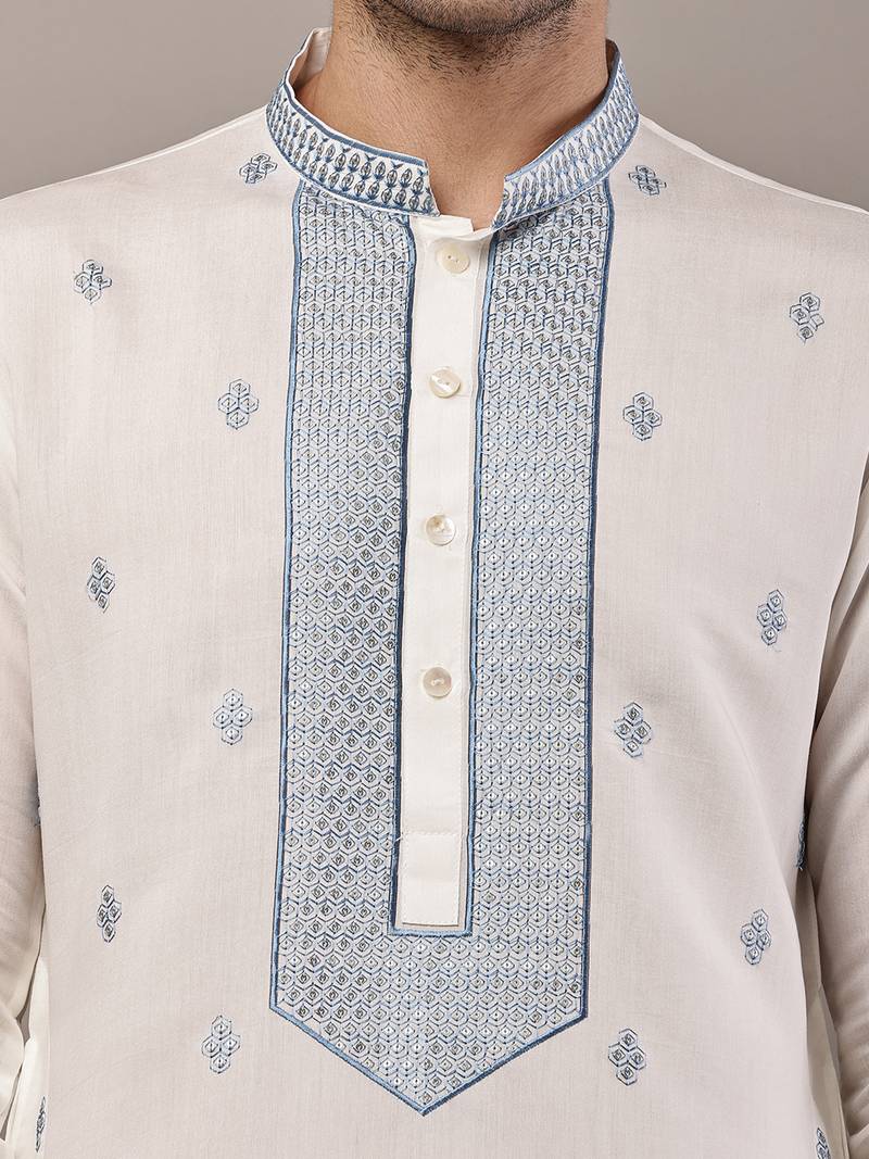 Men’s off-white embroidered kurta