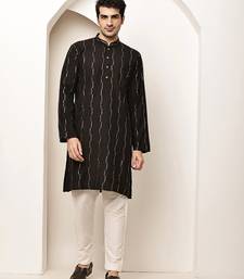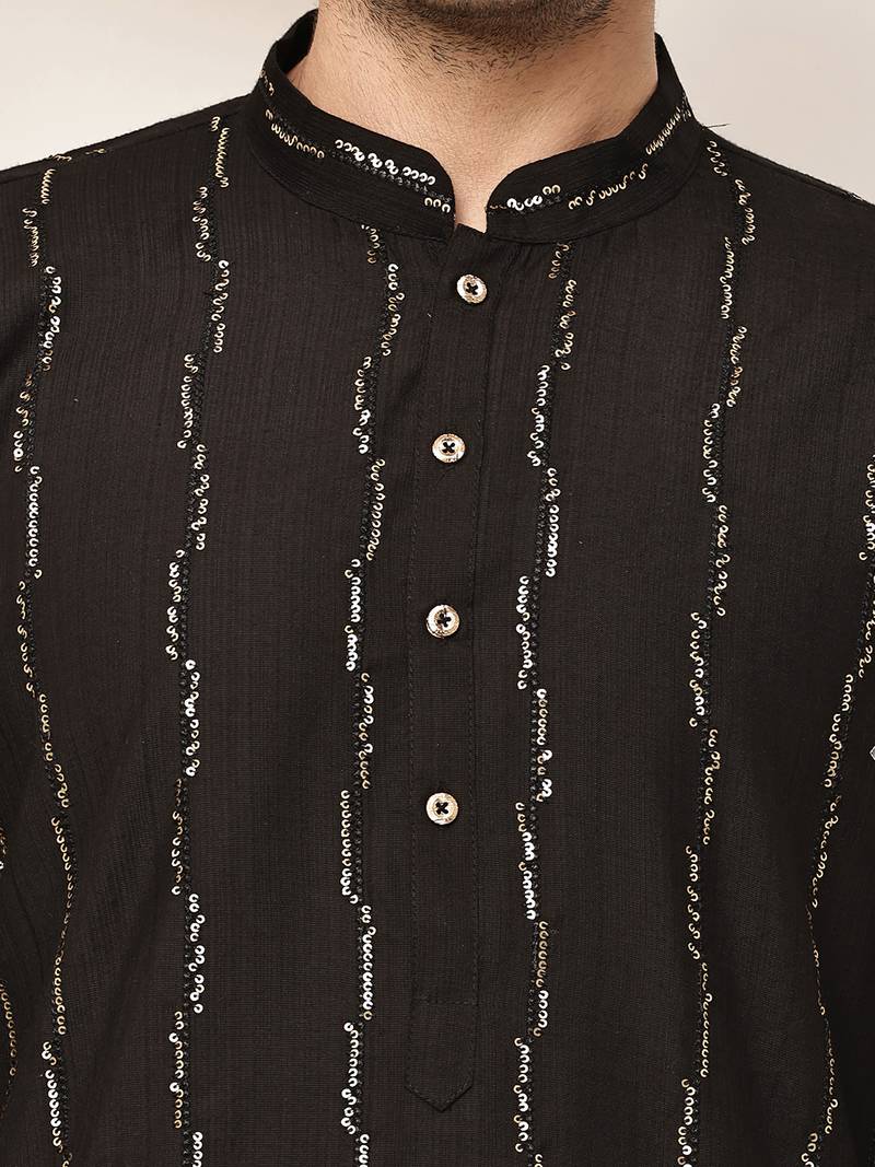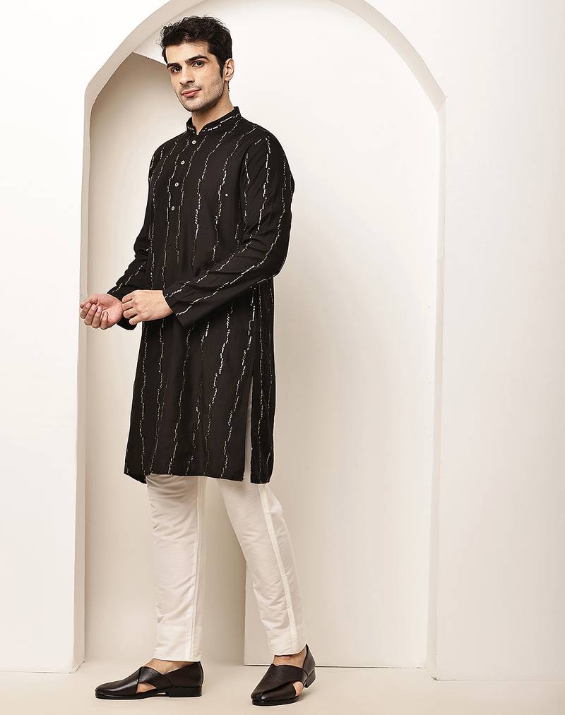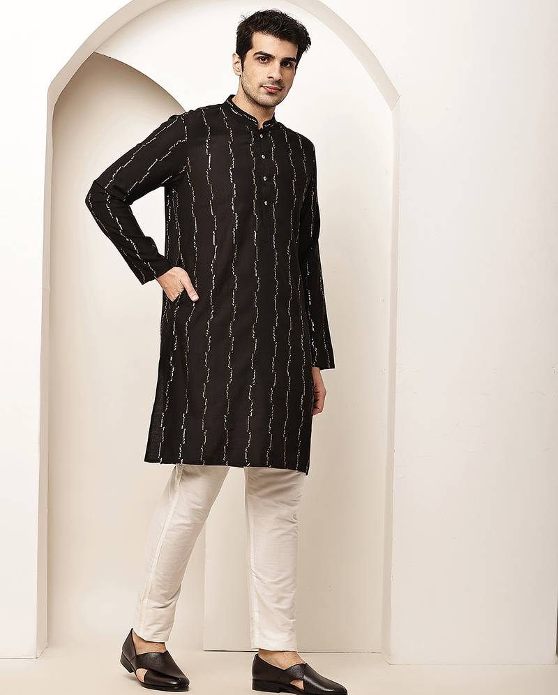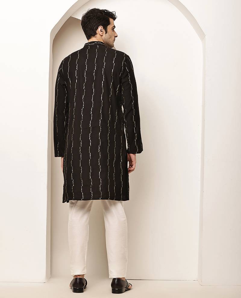 Men’s onyx black textured threadwork kurta