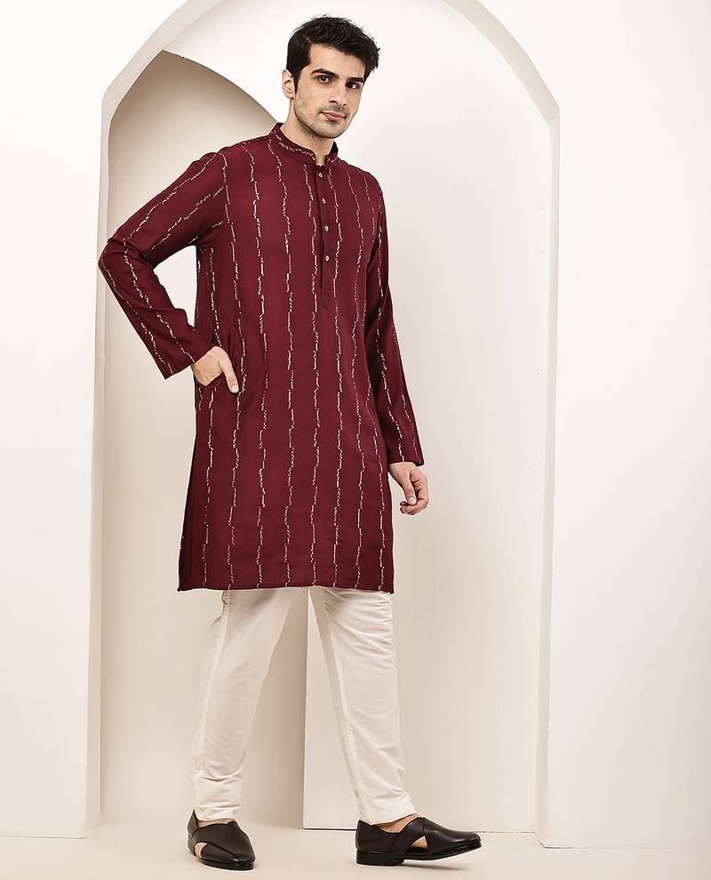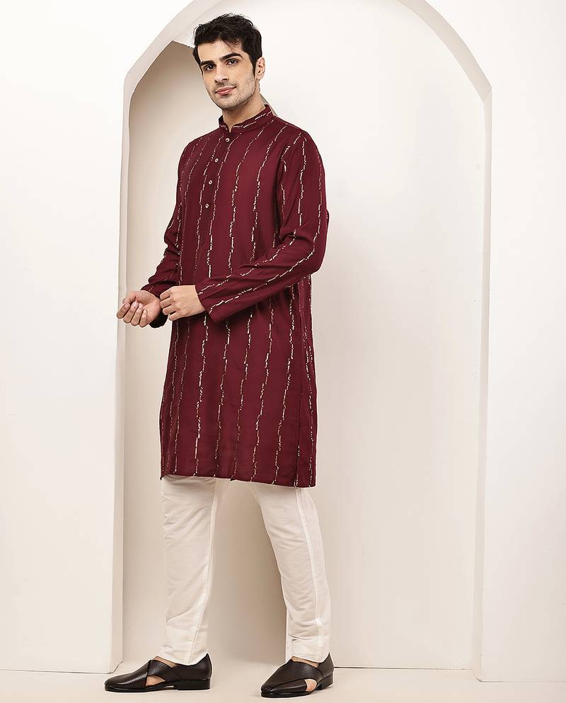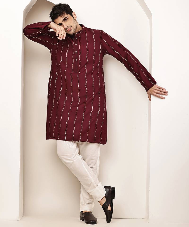 | Product Name | Men’s Onyx Maroon Textured Threadwork Kurta | |