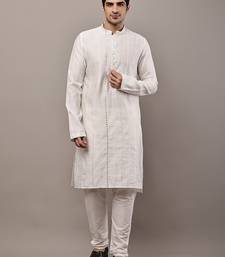 Men’s white textured embroidered kurta
