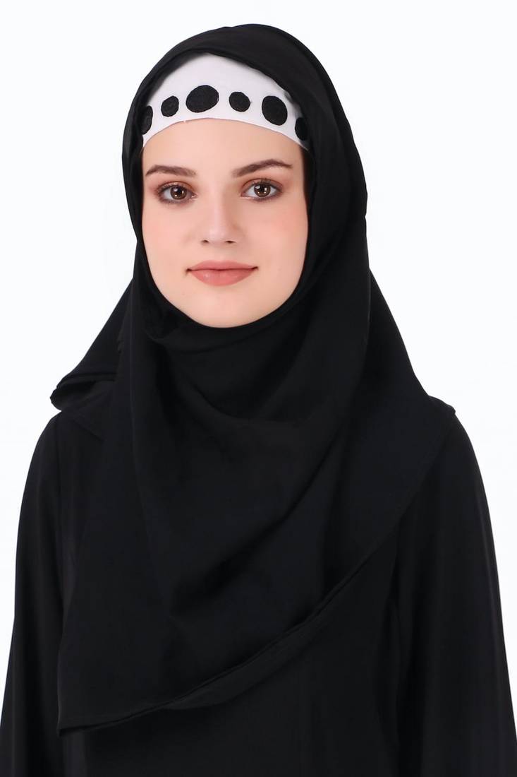 | Product Description | Retro Inspired Polka Dot Embroidery Abaya Curved V Neckline. All Round Polka Dot Embroidery On The Bottom Flare. Crepe And Georgette Dual Layer Flared Bottom With Panels Attached From The Waistline. Matching Square Hijab (100 X100 Cm) / Rectangle Hijab (50 X180 Cm) And Band Can Be Bought Separately, As Shown In The Image. The Model Is Wearing Our Size Xs And Length 60 Inches Cut For Her Height Of 5'8" . Specifications Color: Black & White Fabric Material: Nida, Crepe & Georgette (100% Polyester) Care: Hand Or Machine Wash With Like Colors. Please Note: All Care Has Been Taken For On Screen Color Resemblance Of The Garments, However, 5% Variation May Be Accepted As Different Monitor Capabilities. Important: We Request Customers To Carefully Choose The Right Size And Dress Length Referring To Our Size Chart. |