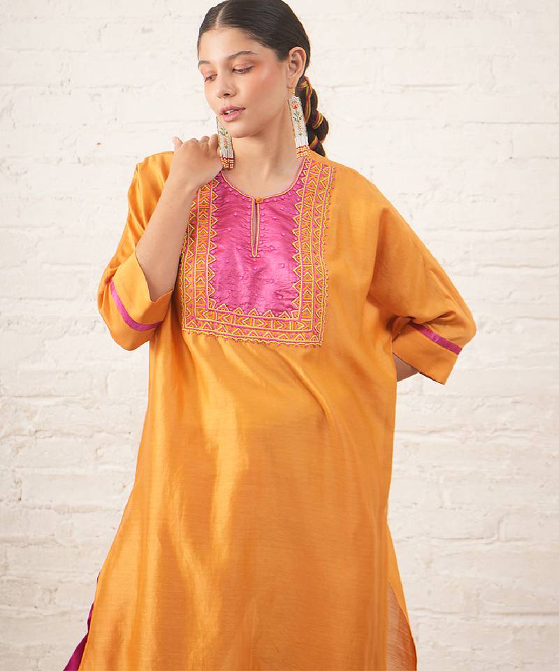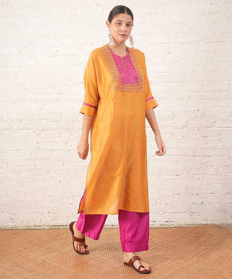 | Product Name | Mustard Yellow Embroidered Chanderi Kurta Set | |