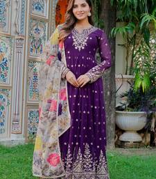 Georgette embroidered gown & pant with printed dupatta
