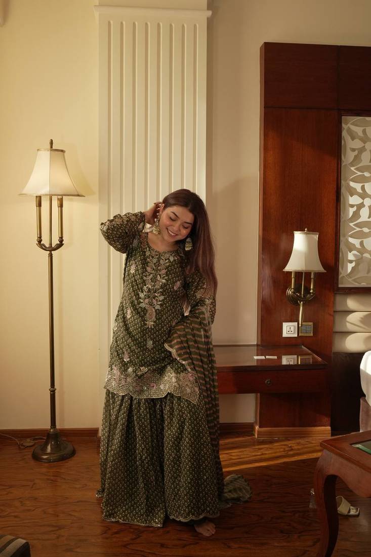 | Product Name | Green Chinon Kurta Palazzo Set | |