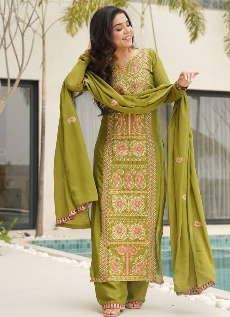 | Product Name | Green Chinon Zari & Thread Embroidered Kurta Set | |