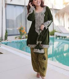 Green velvet zari coding work kurta set