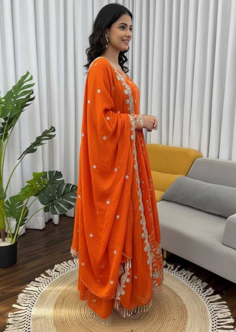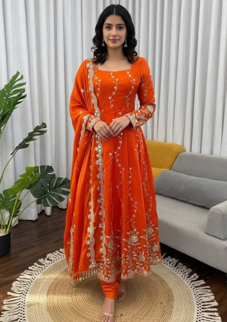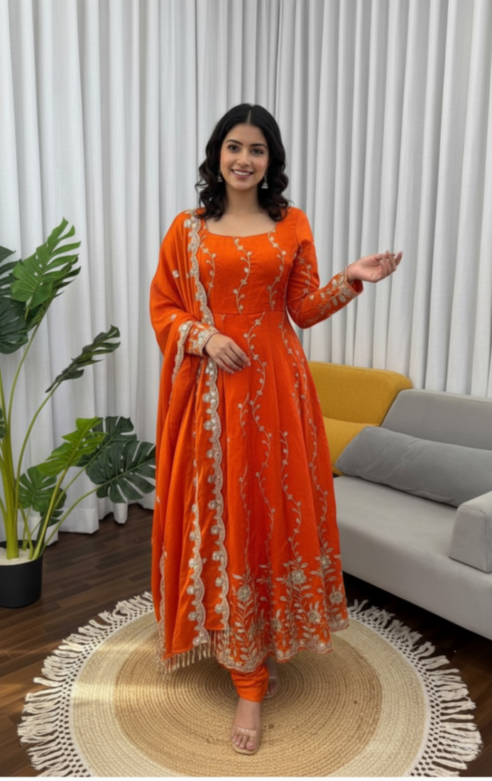 | Product Name | Orange Embroidered Fendy Silk Anarkali Set | |
