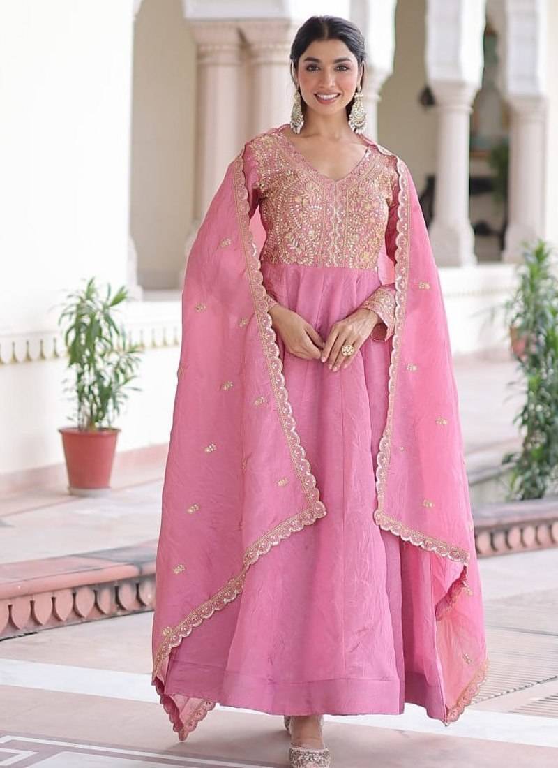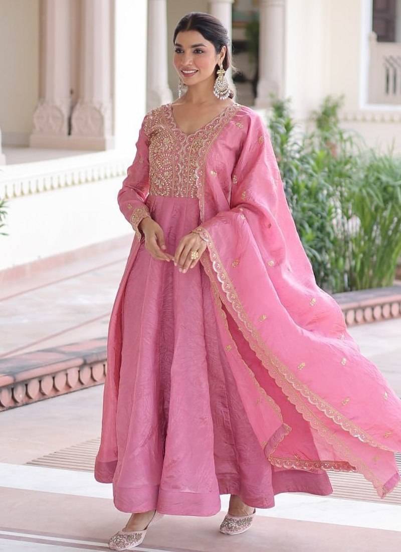 | Product Name | Pink Embroidered Gold Crush Gown & Dupatta | |