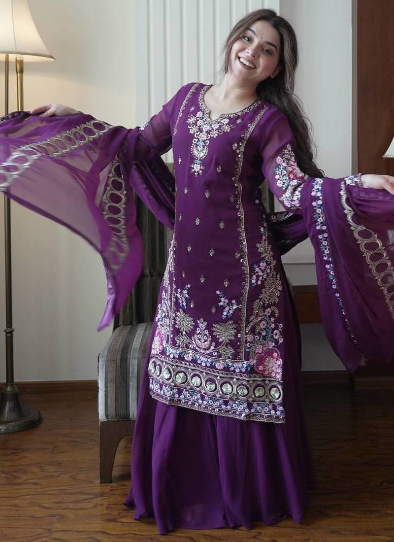 Purple georgette embroidered kurta palazzo set