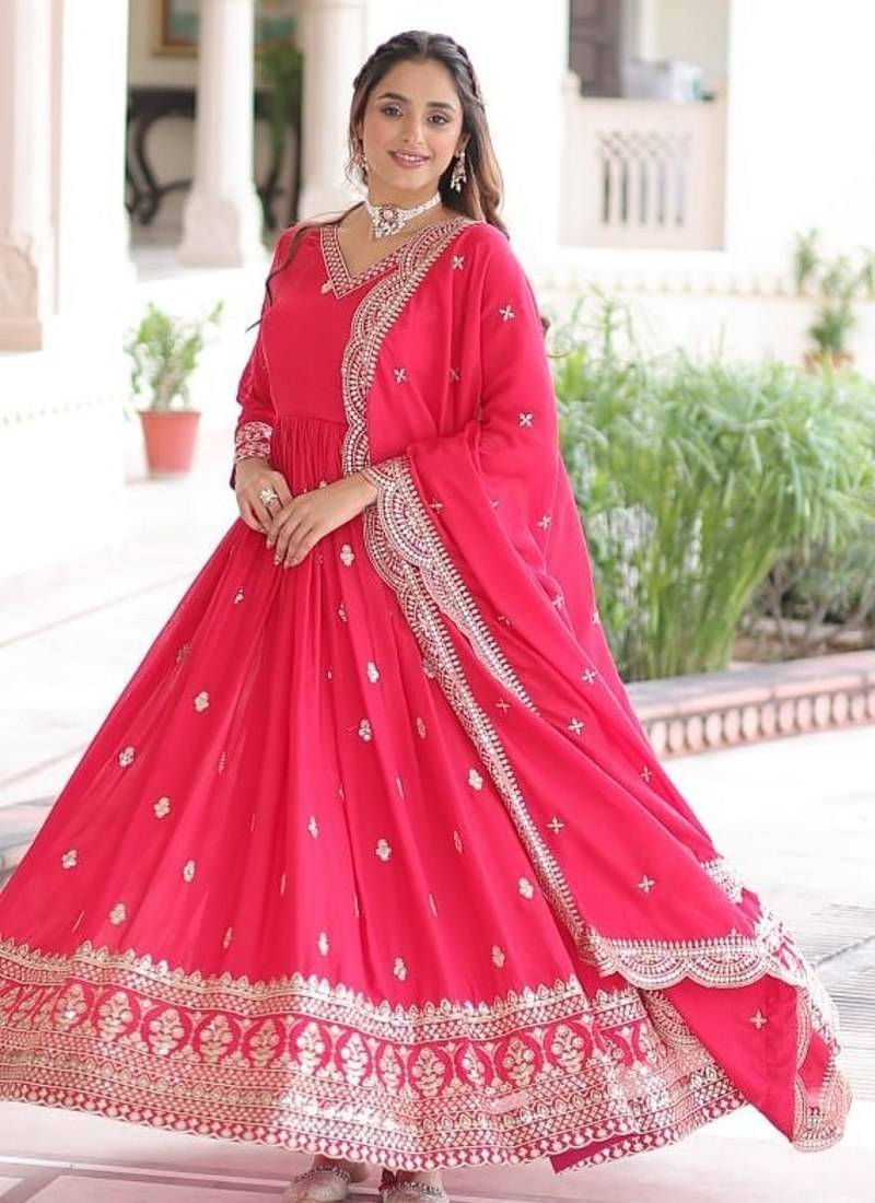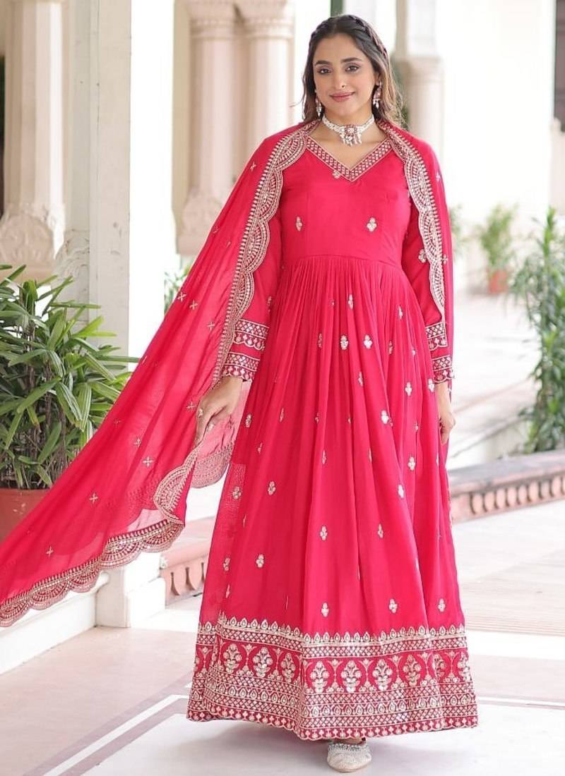 | Product Name | Rani Pink Vichitra Silk Embroidered Gown & Dupatta | |