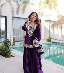 | Product Description | Top (Kurti) Fabric: Ice Velvet Work: Rich Zari Embroidery With Real Mirror Work Lining: Cotton (Full Inner) Sleeves: Full Sleeves With Bell Sleeve Pattern Neck Type: V Neck With Mirror Work Design Length: 32 Inches Stitching: Standard Stitching Palazzo Fabric: Ice Velvet Lining: Cotton (Full Inner) Length: 40–42 Inches Waist: 36–40 Inches (Adjustable As Per Size) Stitching: Fully Stitched With Elastic Waist Batwa (Potli Bag) Fabric: Ice Velvet Work: Rich Zari Embroidery With Real Mirror Work |