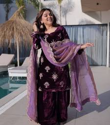 Velvet zari embroidered kurta palazzo set
