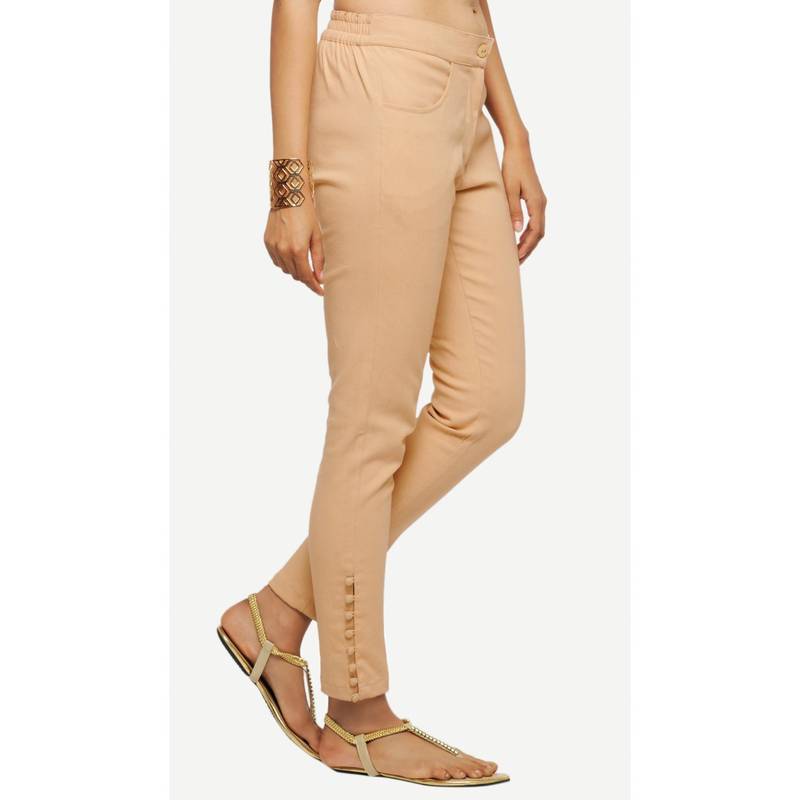| Product Description | What's More Flattering Than A Pair Of Fitting Pants In Stretch Cotton? In A Striking Shade Of Beige And Button Details At The Hem, This Pant Is For Keeps! X000 D |