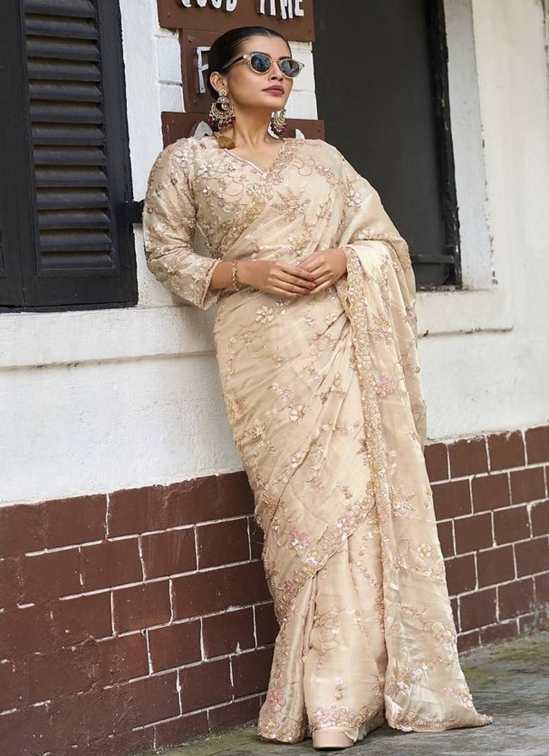 Product Name | Chiku Embroidered Banarasi Tissue Saree | |