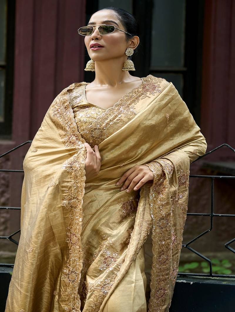 • | Saree | : | Color- Gold / Fabric- Banarasi |