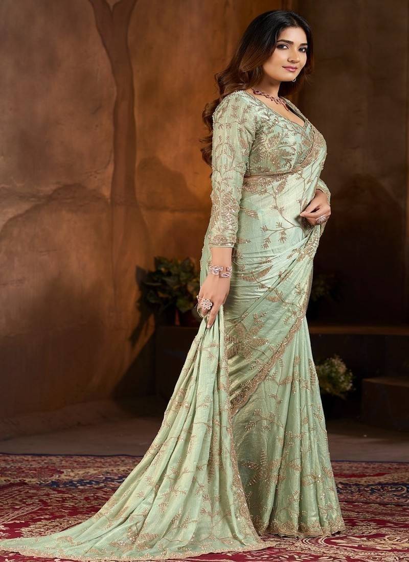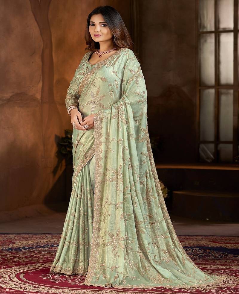 Product Description | This Green Embroidered Georgette Saree Offers A Stunning Balance Of Vibrant Color And Delicate Detail. The Lightweight Georgette Fabric Ensures A Beautiful, Flowing Drape, While The Intricate Embroidery, Often Featuring Resham, Zari, Or Sequins, Adds An Elegant Touch. Perfect For Festivals, Parties, Or Special Occasions, This Saree Embodies Effortless Grace And Rich, Appealing Style