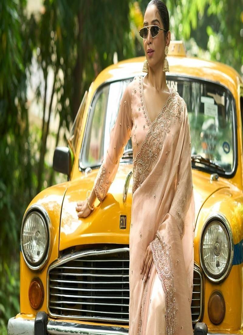 • | Blouse | : | Color- Chiku / Fabric- Banarasi |