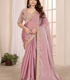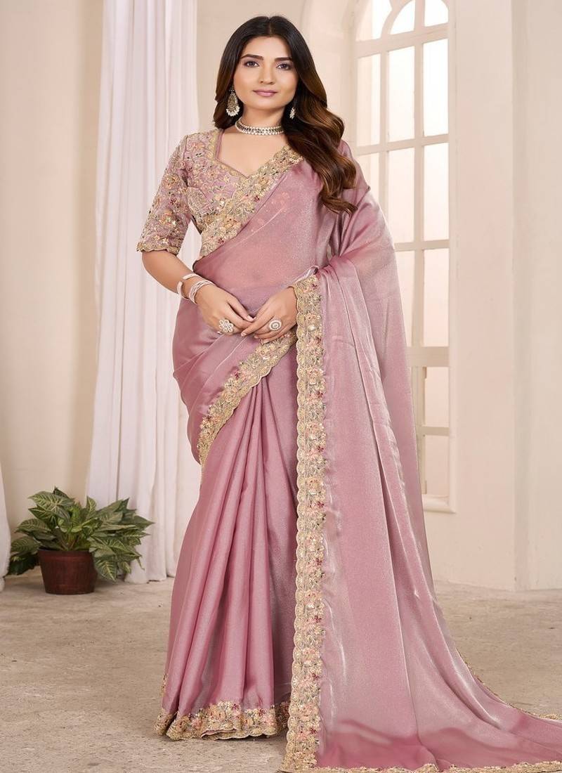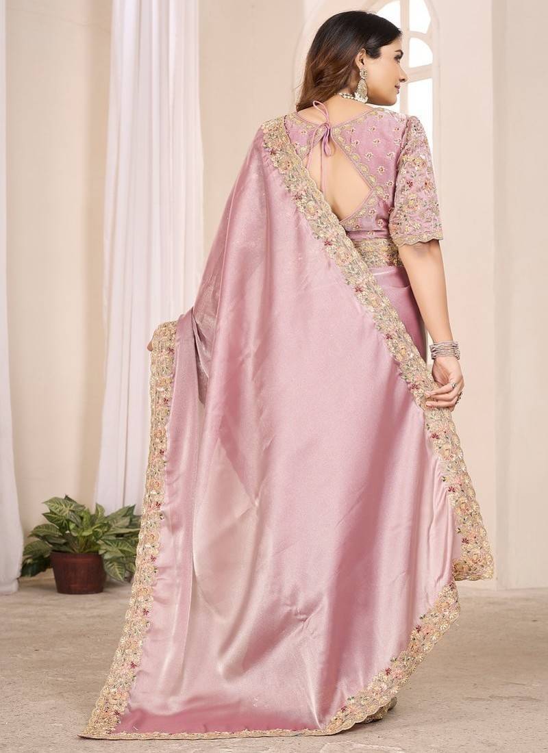 Pink embroidered georgette saree