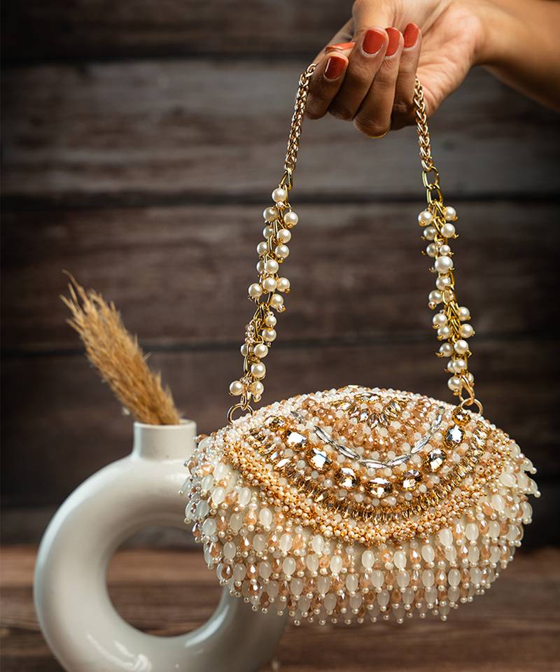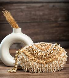 It Doesn't Get More Modish Than This Gold And Off White Beadwork Clutch Accompanied With Beaded Tassels Throughout Making It An "Oh La La" Addition To Any Contemporary Fit.